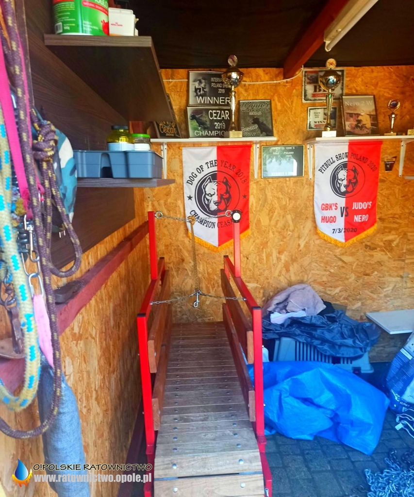Policjanci ustalili miejsce w którym miał przebywać podejrzewany. 15 września br. na posesji w jednej spod opolskich miejscowości ujawnili 11 psów rasy amstaff. Czworonogi miały na ciele obrażenia i blizny mogące świadczyć o tym, że brały udział w walkach psów. Podczas przeszukania pomieszczeń funkcjonariusze ujawnili puchary, trofea, dyplomy mogące pochodzić z walk. Śledczy zabezpieczyli także przyrządy do ćwiczeń i leki dla zwierząt. Podejrzewany o przemoc wobec zwierząt został zatrzymany i trafił do policyjnych aresztów.