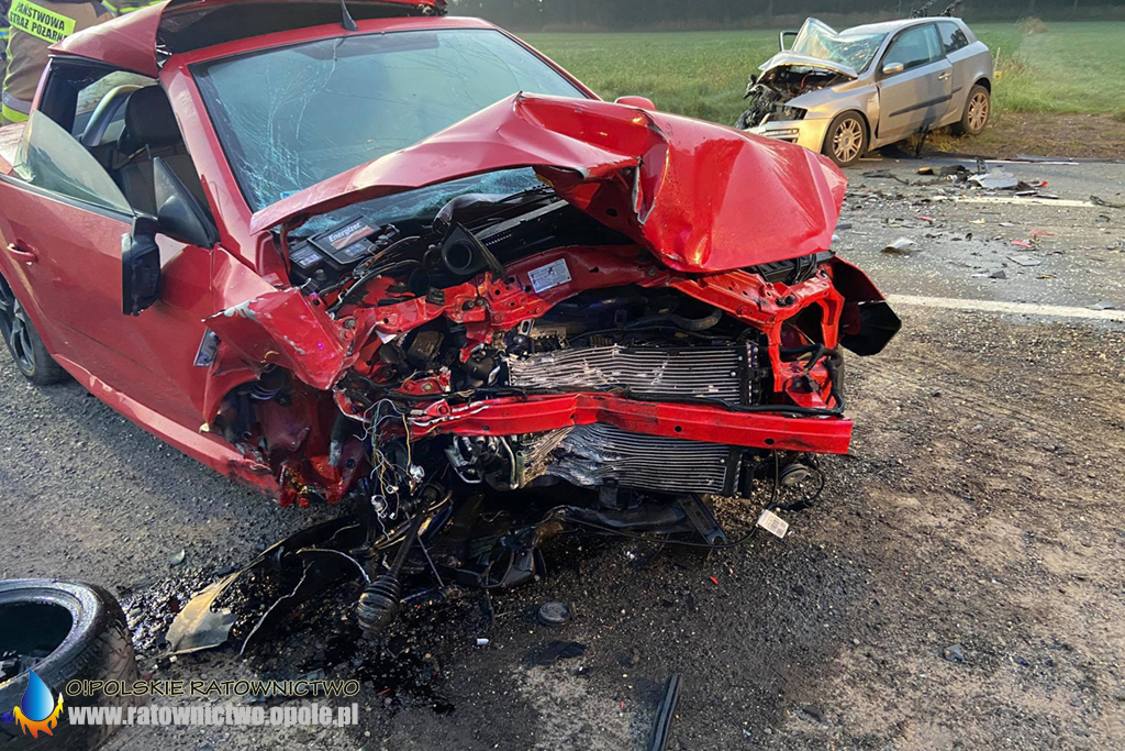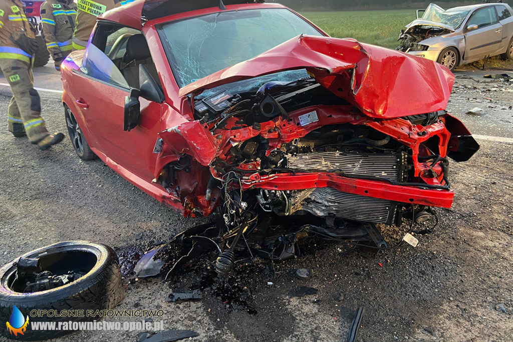 Na łuki drogi doszło tam do czołowego zderzenia dwóch samochodów osobowych – fiata oraz opla.