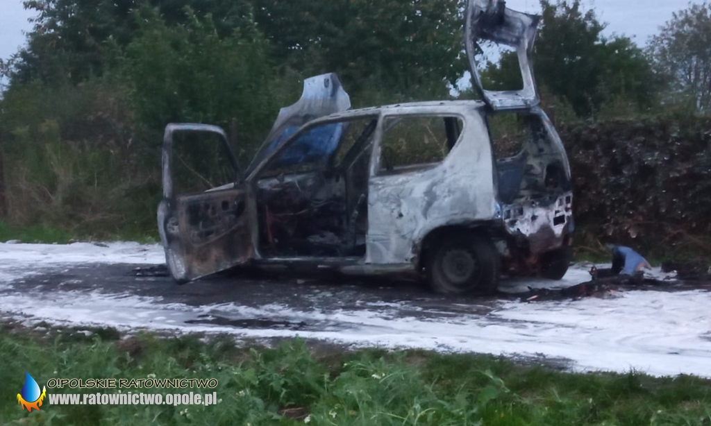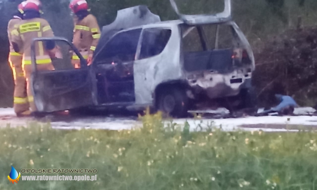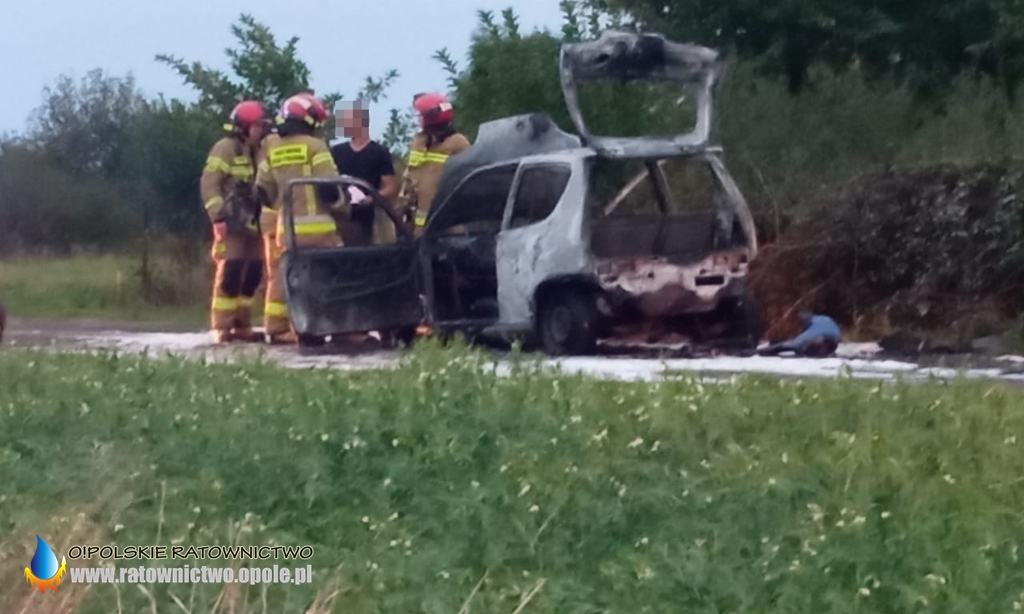 W czwartek 23 września o godzinie 18:24 do dyżurnego Stanowiska Kierowania KP PSP w Brzegu wpłynęło zgłoszenie o pożarze samochodu w przysiółku Raski w gminie Lewin Brzeski.