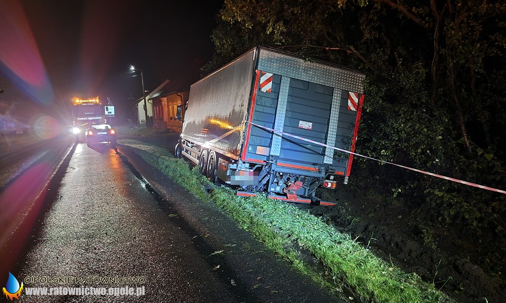 Kierujący samochodem ciężarowym marki Mercedes stracił panowanie nad pojazdem, wpadł do rowu i uderzył w słup telekomunikacyjny.