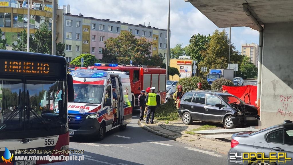 Ze wstępnych informacji wynika, że kierujący Oplem Zafira jadąc ulicą Książąt Opolskich nie zatrzymał się przed wjazdem na rondo i uderzył w betonowy słup pod estakadą.