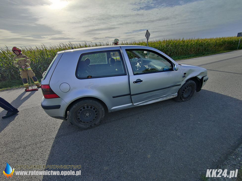 Kierujący oplem corsą wymusił pierwszeństwo przejazdu na kierującym VW golfem. Po zderzeniu opel, którym jechało starsze małżeństwo zatrzymał się w rowie.