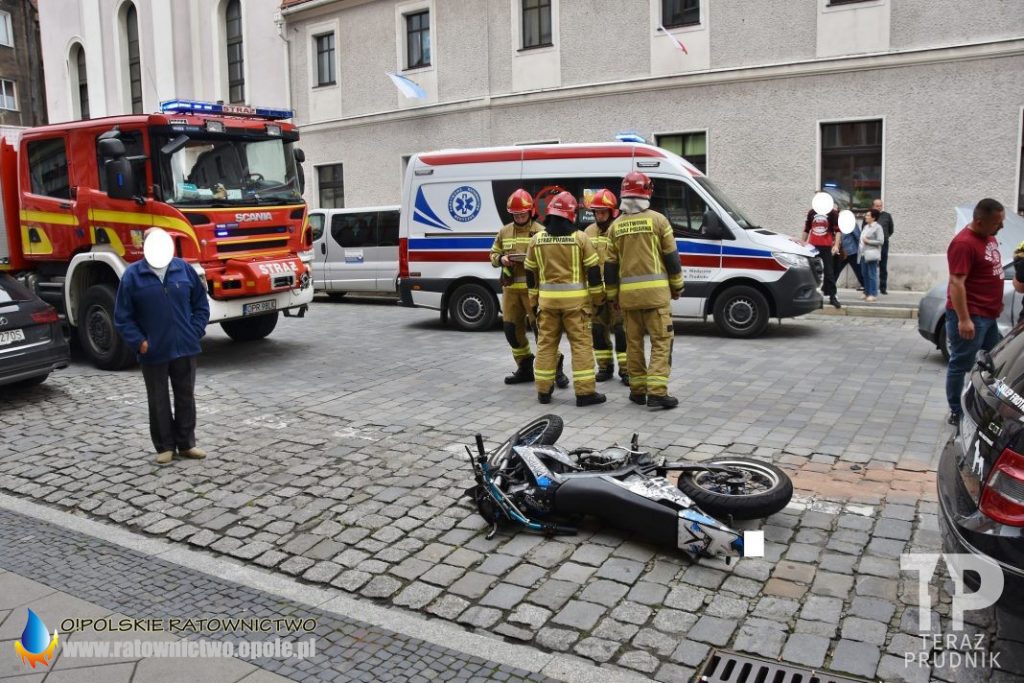 W piątek 17 września około godziny 10:30 Stanowisko Kierowania Komendanta Powiatowego PSP w Prudniku otrzymało zgłoszenie o zdarzeniu drogowym z udziałem samochodu osobowego oraz motocykla w Prudniku.