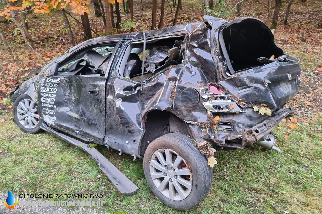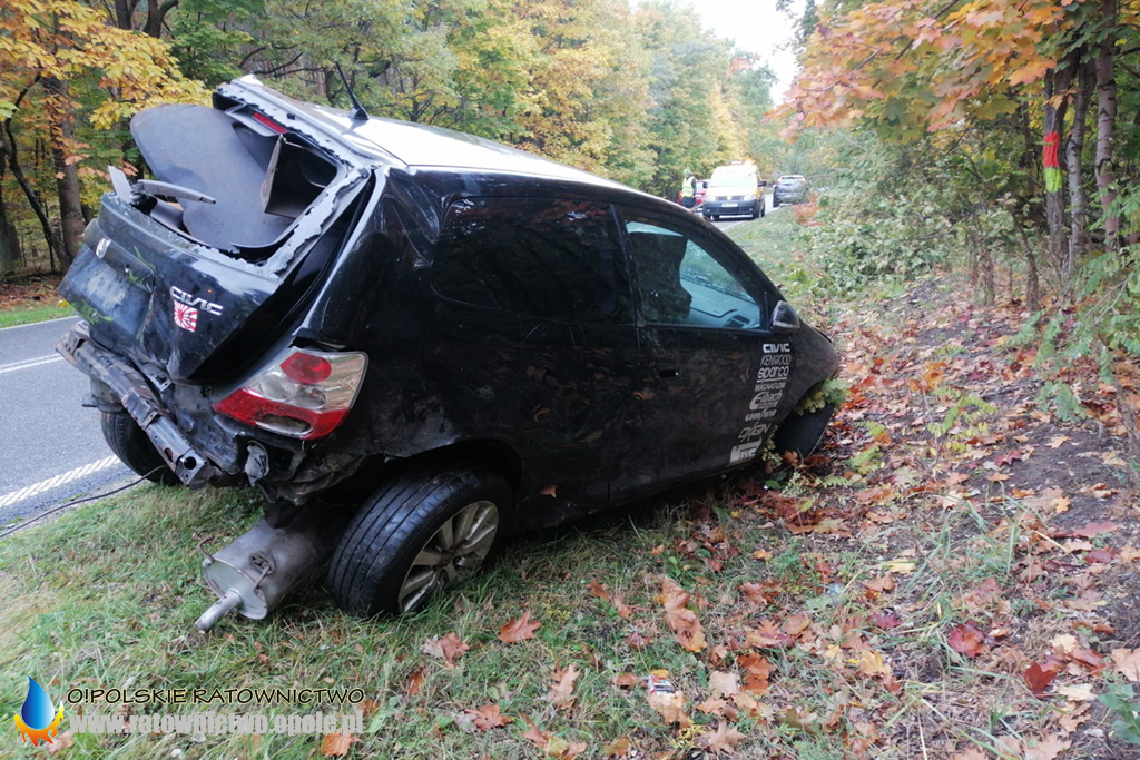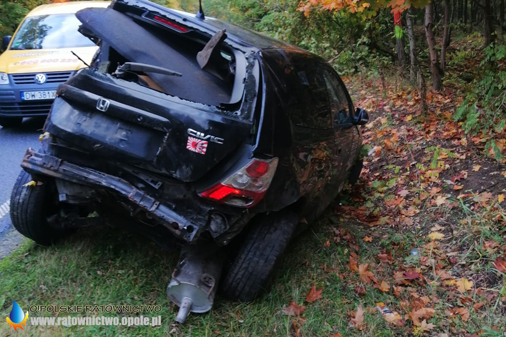 Kierujący samochodem honda na prostym odcinku drogi utracił panowanie nad pojazdem, następnie zjechał na pobocze, gdzie złamał kilka małych drzew i kilkukrotnie dachował.