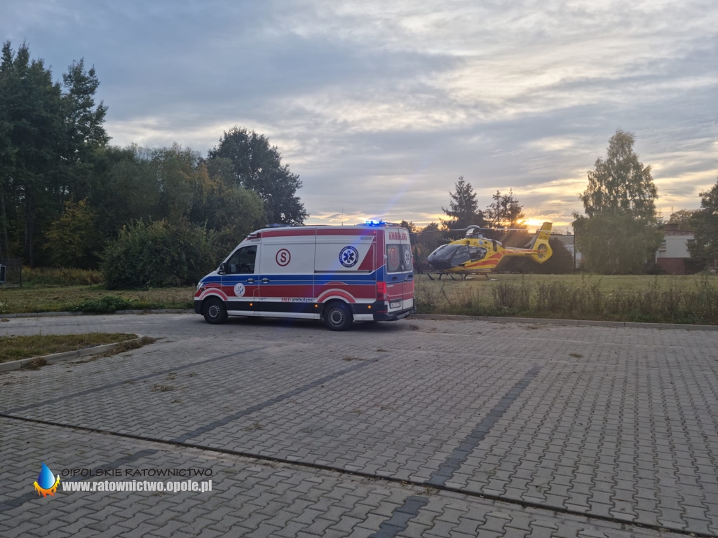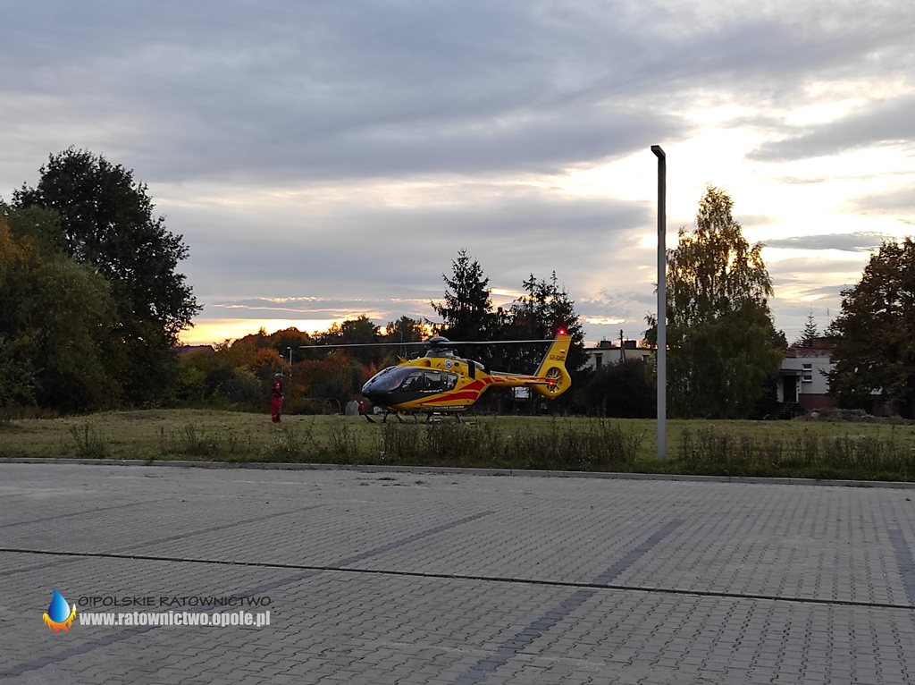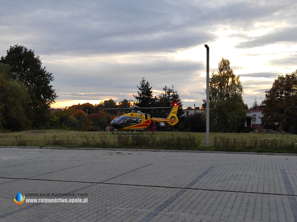 Maszyna drogą powietrzną przetransportowała poszkodowanego mężczyznę do szpitala w Oleśnie.