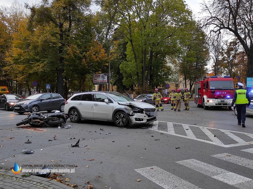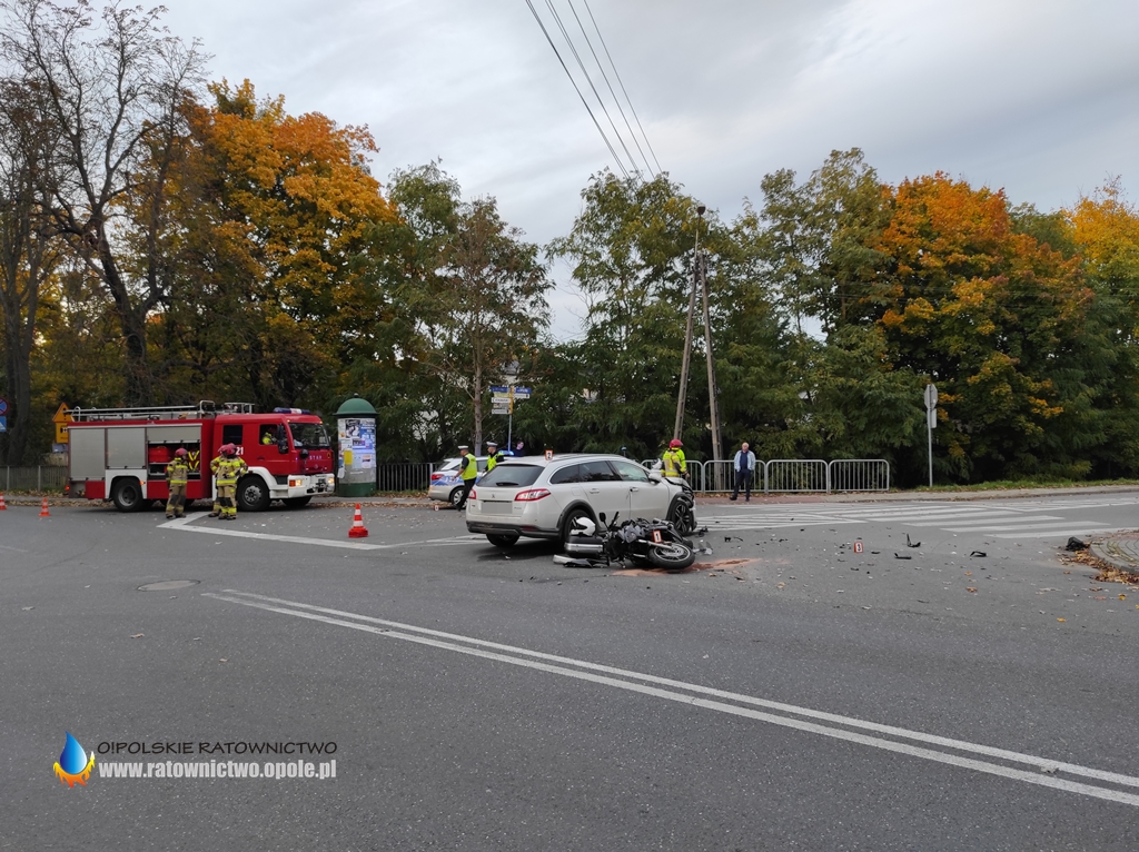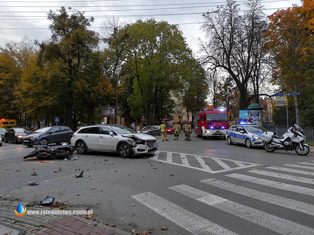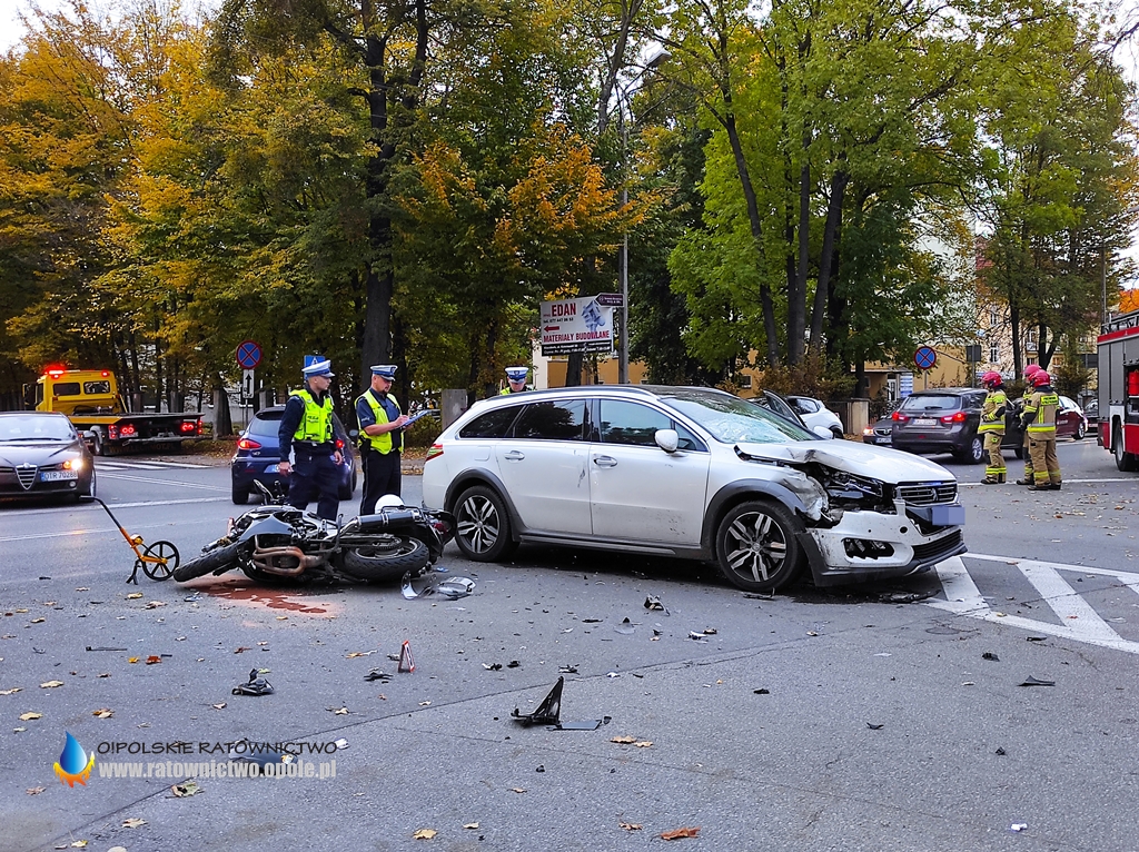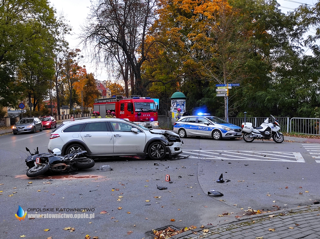 W środę 20 października o godzinie 16:45 do kluczborskich służb ratunkowych wpłynęło zgłoszenie o wypadku z udziałem motocyklisty na skrzyżowaniu ulic Skłodowskiej-Curie, Drzymały, Strzeleckiej.