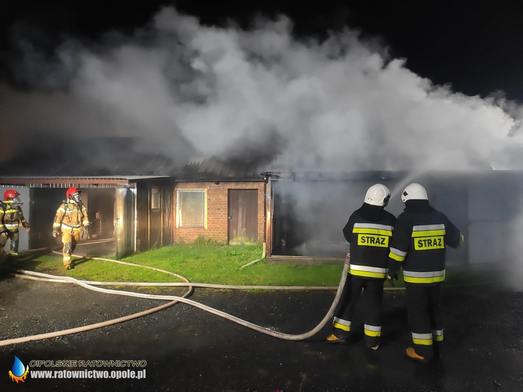 Pożar budynku gospodarczego wraz z przyległymi garażami w Starym Oleśnie