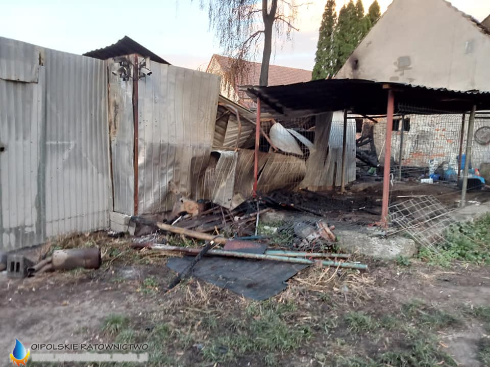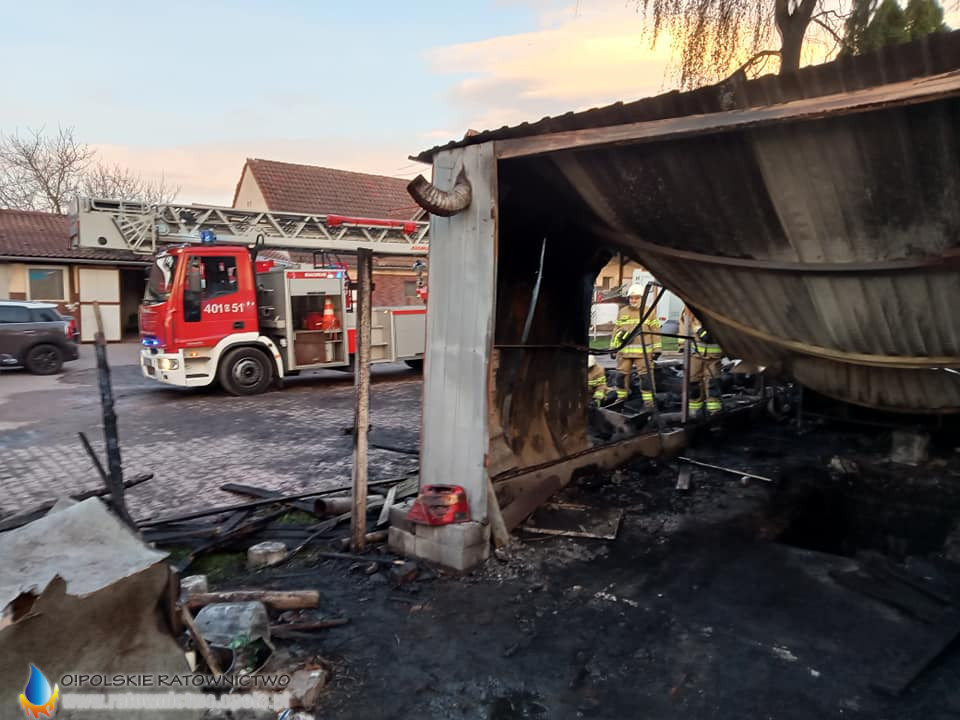 Po przybyciu na miejsce pierwszych zastępów potwierdzono pożar budynku gospodarczego wraz z przyległym garażem. Wewnątrz garażu spłonął samochód.