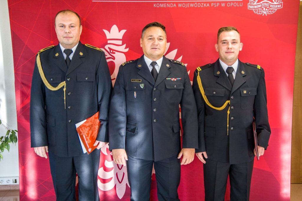 28 października 2021 r. o godzinie 10:00 w Komendzie Wojewódzkiej Państwowej Staży Pożarnej w Opolu odbyła się uroczysta zbiórka, w trakcie której st. bryg. Krzysztof Kędryk Opolski Komendant Wojewódzki PSP w Opolu wręczył strażakom listy okolicznościowe oraz złożył gratulacje za wzorowa postawę, godną naśladowania i wyróżnienia. W uroczystości obecni byli również Komendanci Powiatowi PSP w Prudniku, Głubczycach, Kluczborku oraz Komendant Miejski PSP w Opolu wraz ze swoimi zastępcami.