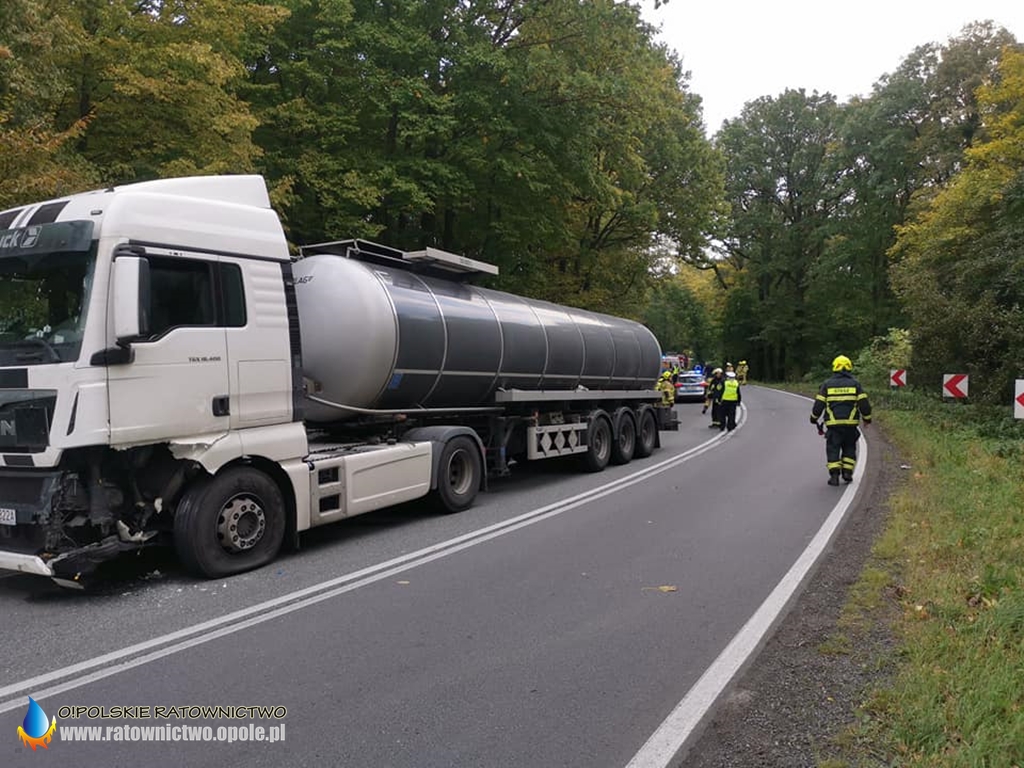 Pomiędzy Ciężkowicami a granicą województwa śląskiego i opolskiego w tzw. „lasku raciborskim” doszło do zderzenia samochodu osobowego i ciężarowego z naczepą typu cysterna – bez ładunku.