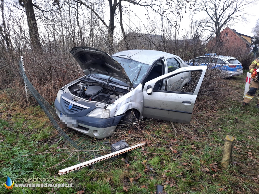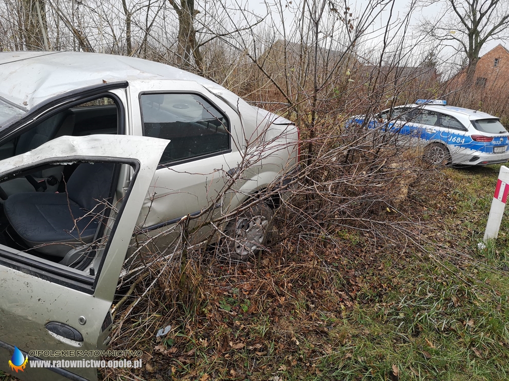 Kierowca samochodu osobowego marki Dacia na ulicy Kluczborskiej stracił panowanie nad pojazdem i dachował.