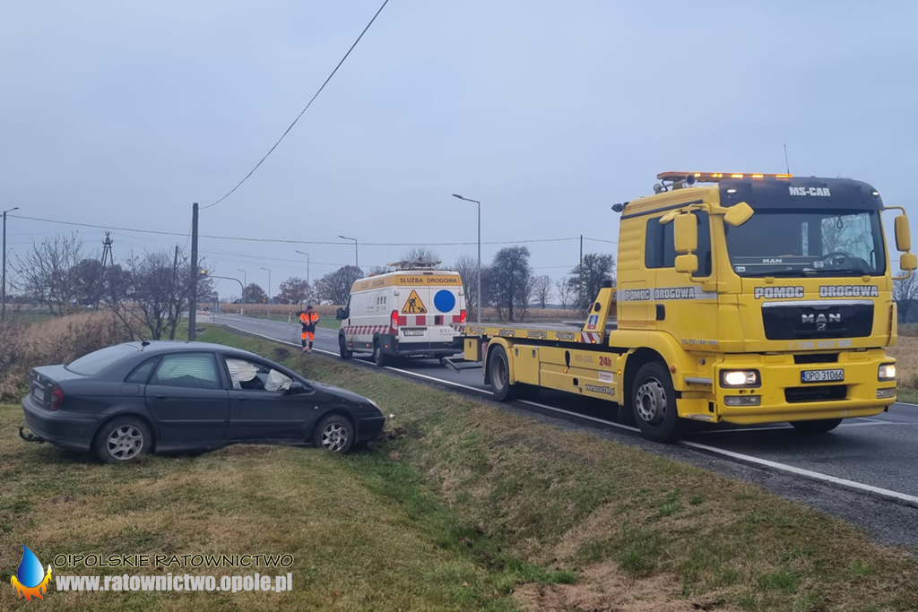 W niedzielę 14 listopada przed godzina 7 na DK45 na wysokości Jełowej doszło do zdarzenia drogowego z udziałem jednego samochodu osobowego.
