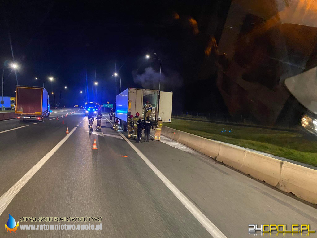 Strażacy szybko ugasili ogień, który pojawił się przy kołach naczepy. Nikomu nic się nie stało.