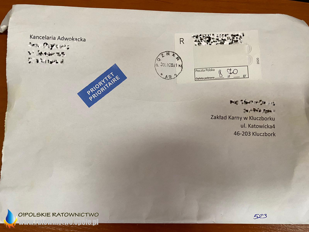Ostatnim przykładem jest zakwestionowana korespondencja, którą przesłano skazanemu do Zakładu Karnego w Kluczborku. Po wpłynięciu przesyłki do więzienia i potwierdzeniu przez skazanego, że jest jej adresatem, otwarto list, w którym ujawniono 6 kartek papieru, w tym dwie niezapisane.