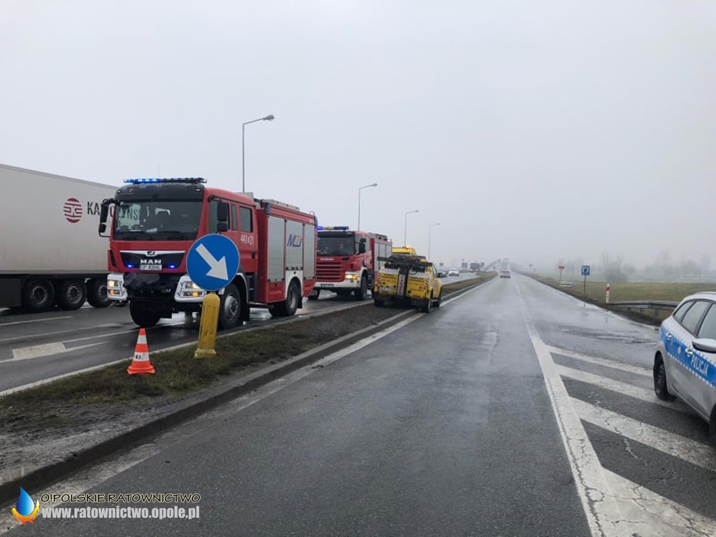 We wtorek 14 grudnia około godziny 12 do krapkowickich służb ratunkowych wpłynęło zgłoszenie o wypadku na drodze krajowej numer 45 pomiędzy Rogowem Opolskiem a Dąbrówką Górną przy zjeździe na węzeł autostradowy „Opole Południe”.