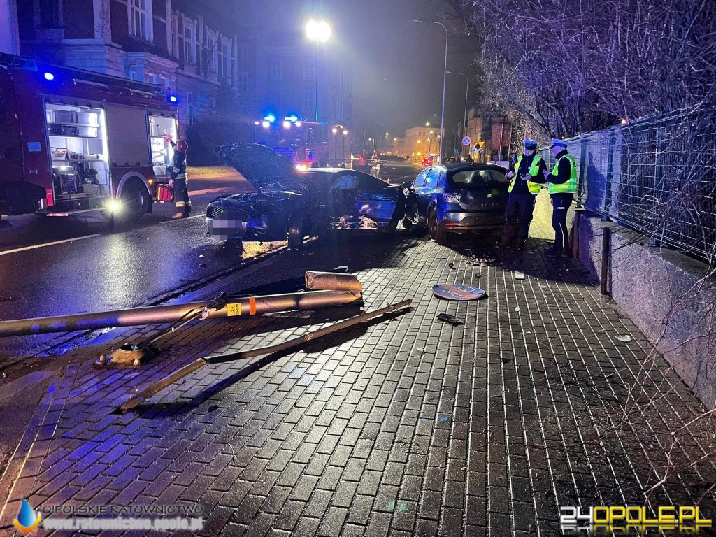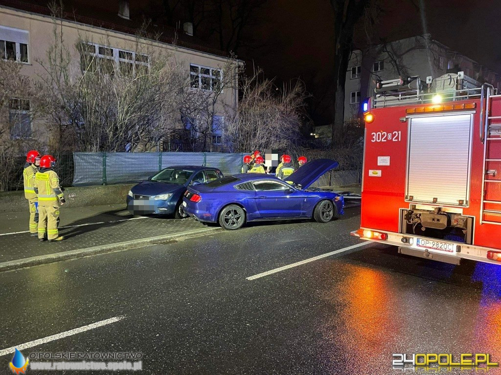 Kierowca mustanga stracił panowanie nad pojazdem, zjechał z drogi taranując latarnię i uderzając w zaparkowanego seata.