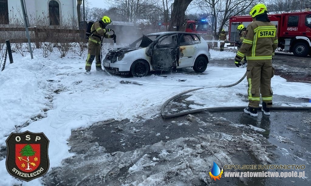 W poniedziałek 24 stycznia o godzinie 15:55 do dyżurnego Stanowiska Kierowania KP PSP w Krapkowicach wpłynęło zgłoszenie o pożarze samochodu osobowego w miejscowości Moszna w gminie Strzeleczki.