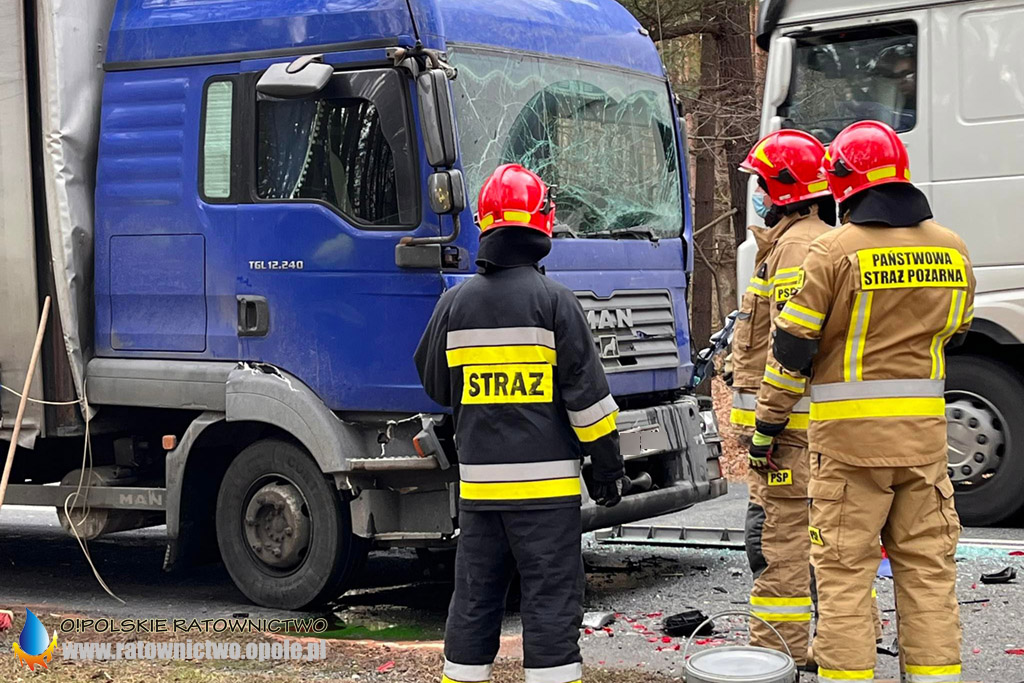 We wtorek 18 stycznia przed godziną 12 na DW408 w okolicy miejscowości Kotlarnia doszło do zdarzenia drogowego z udziałem dwóch samochodów ciężarowych.