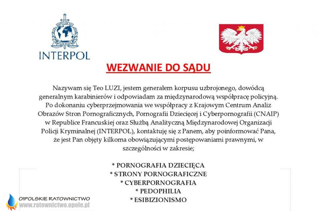 Biuro do Walki z Cyberprzestępczością Komendy Głównej Policji ostrzega przed oszukańczymi wiadomościami przesyłanymi drogą elektroniczną, informującymi o wezwaniu na Policję.