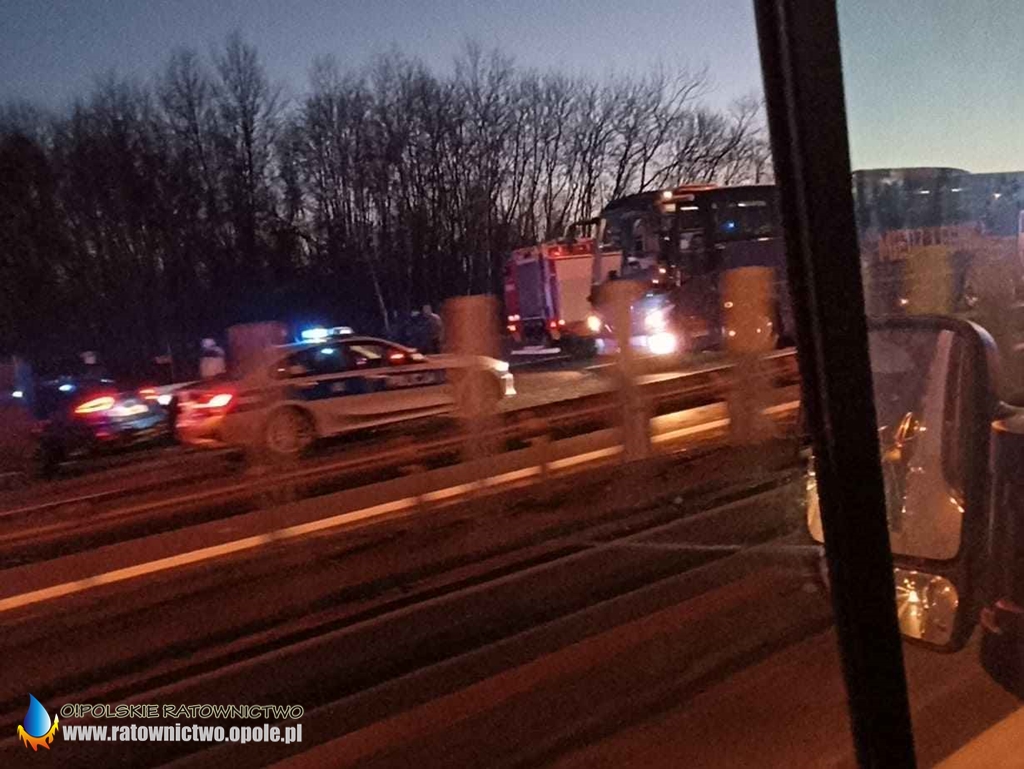 Ze wstępnych informacji wynika, że na pasie w kierunku Katowic samochód osobowy uderzył w autobus.