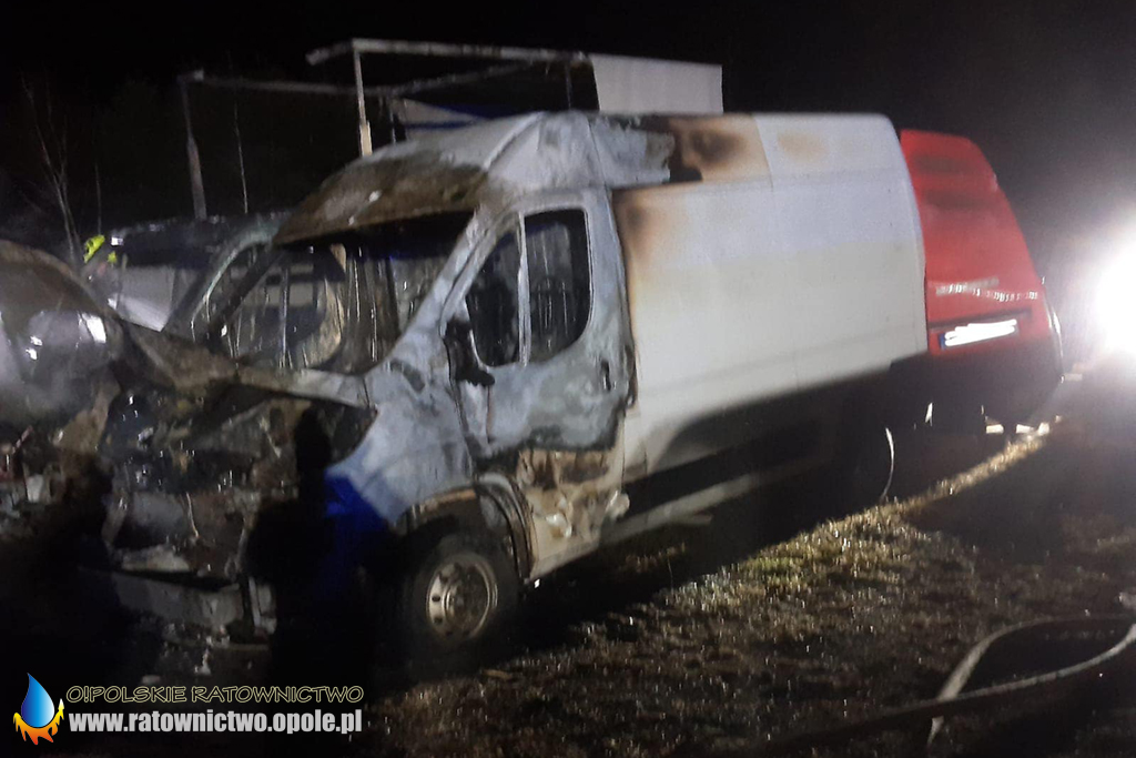 W środę 16 marca po godzinie 1 straż pożarna otrzymała zgłoszenie o pożarze dwóch samochodów dostawczych w Krzyżowa Dolina.