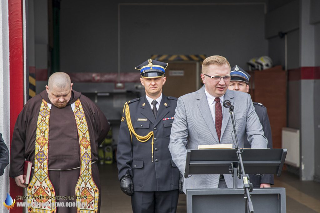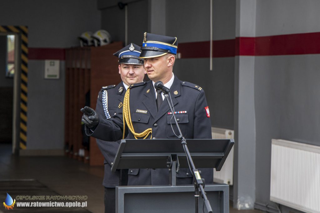 Zastępca komendanta KP PSP w Kluczborku mł. bryg. Łukasz Olejnik,