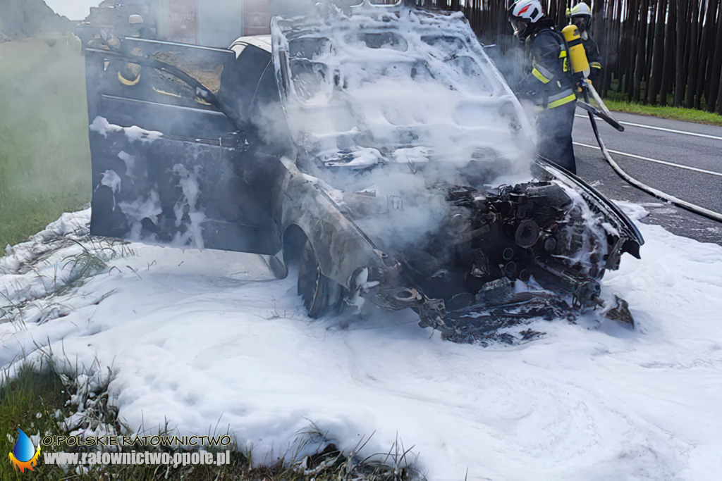 W czwartek 26 maja około godziny 9:35 straż pożarna otrzymała zgłoszenie o pożarze samochodu osobowego na DK46 między miejscowościami Grodziec – Myślina.