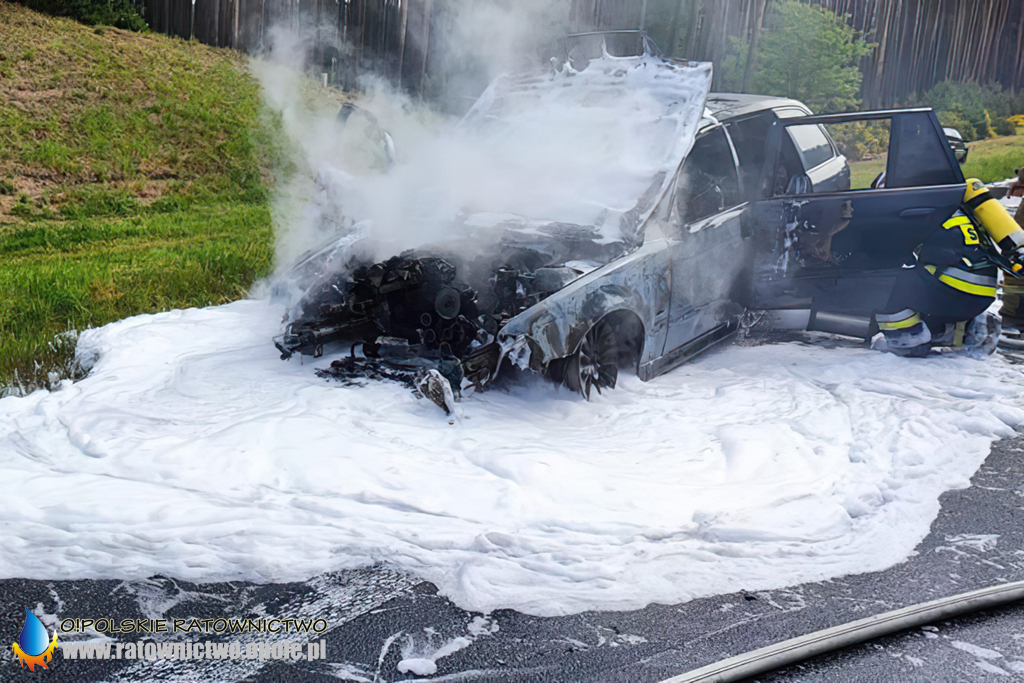 Pożar powstał w komorze sinika po czym rozprzestrzenił się na cały samochód.