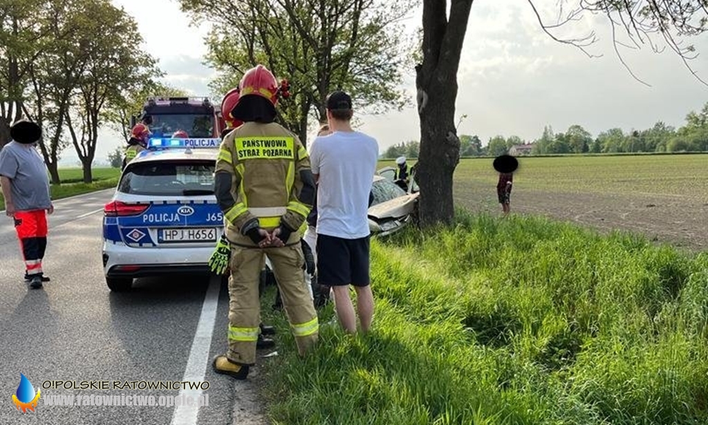 Ze wstępnych informacji wynika, że kierujący Volkswagenem w wyniku nadmiernej prędkości na zakręcie stracił panowanie nad pojazdem, wypadł poza drogę i uderzył w drzewo. Samochodem podróżowały 4 osoby.