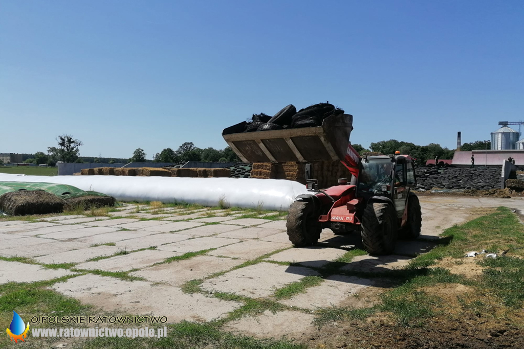 Do zdarzenia zadysponowano pierwsze zastępy OSP i PSP. Po dojeździe potwierdzono pożar sianokiszonki, która przykryta jest oponami. Kierujący działaniem ratowniczym poprosił dyżurnego o zadysponowanie dodatkowych sił i środków.