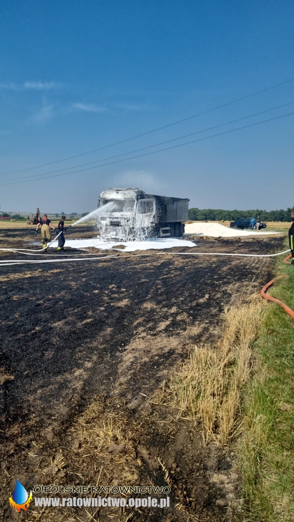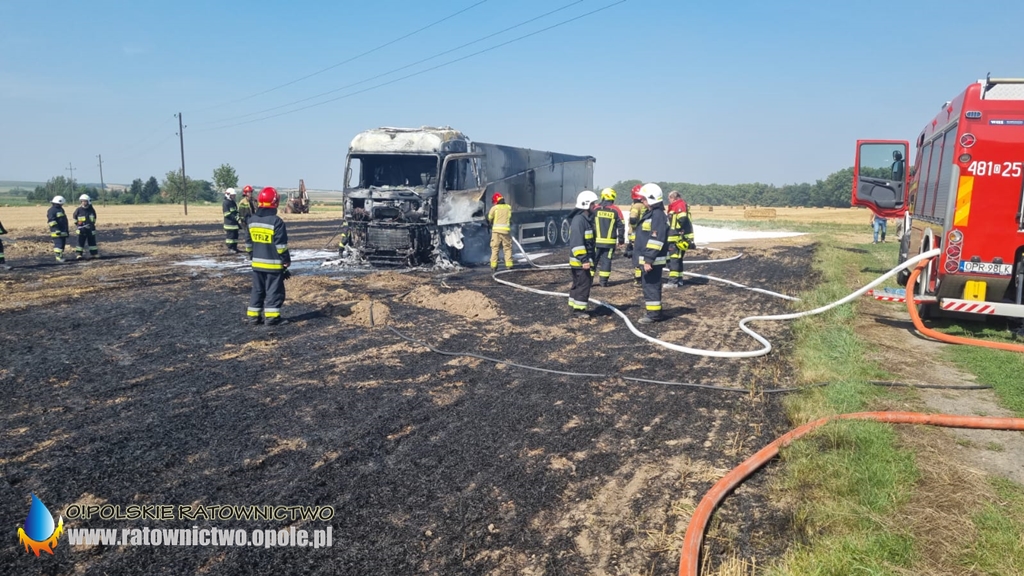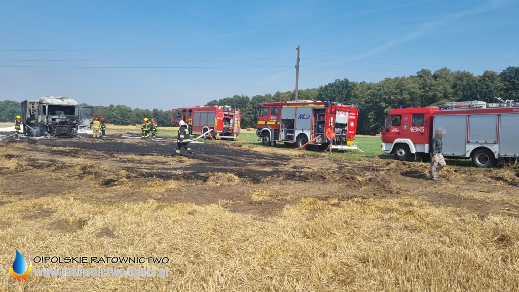 W czwartek 18 sierpnia kilka minut przed godziną 10:30 do Stanowiska Kierowania KP PSP w Prudniku wpłynęło zgłoszenie o pożarze samochodu ciężarowego na polu w Dobroszewicach w gminie Lubrza.