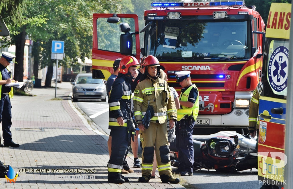 Poszkodowany został kierowca jednośladu, któremu na miejscu pomocy udzielił zespół ratownictwa medycznego.