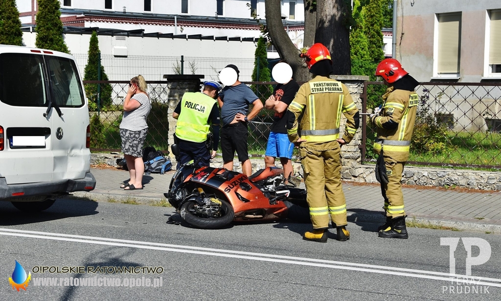 Po przybyciu na miejsce służb i rozpoznaniu ustalono, że doszło do wypadku z udziałem motocykla marki Suzuki i samochodu dostawczego marki Volkswagen.