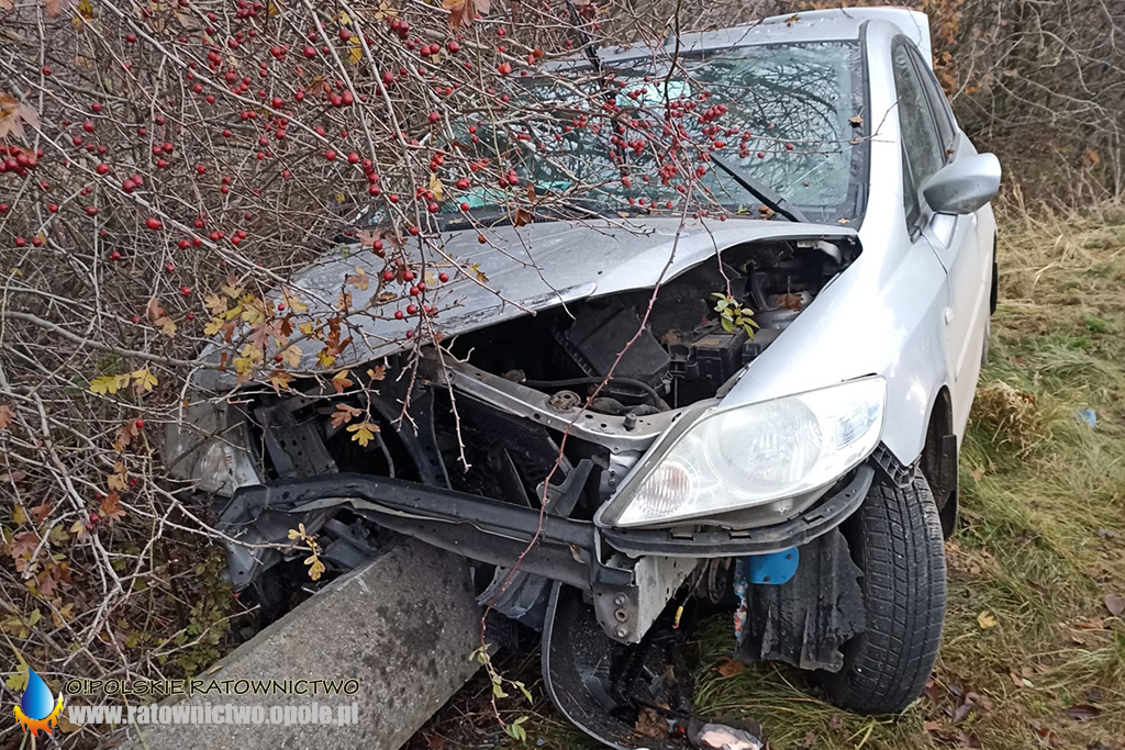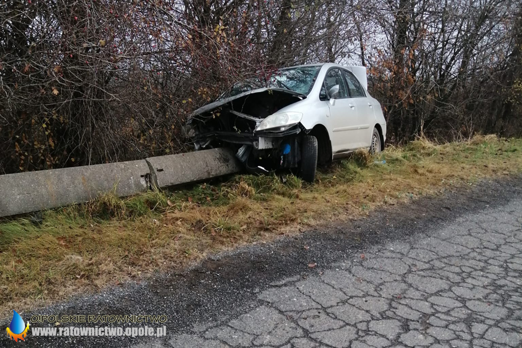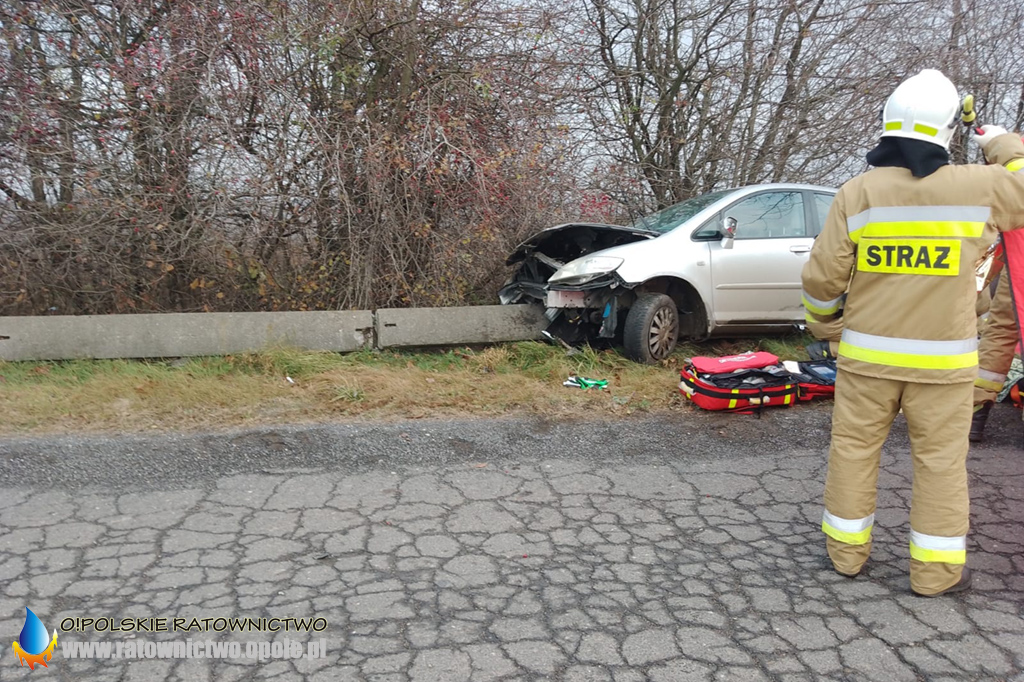 Jedna osoba poszkodowana w wypadku na trasie Baborów – Dziećmarów. Kierujący Hondą wjechał w betonową barierę