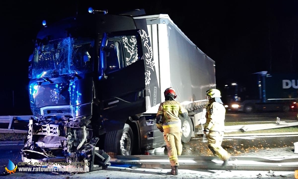 Zderzenie dwóch samochodów ciężarowych na autostradzie A4