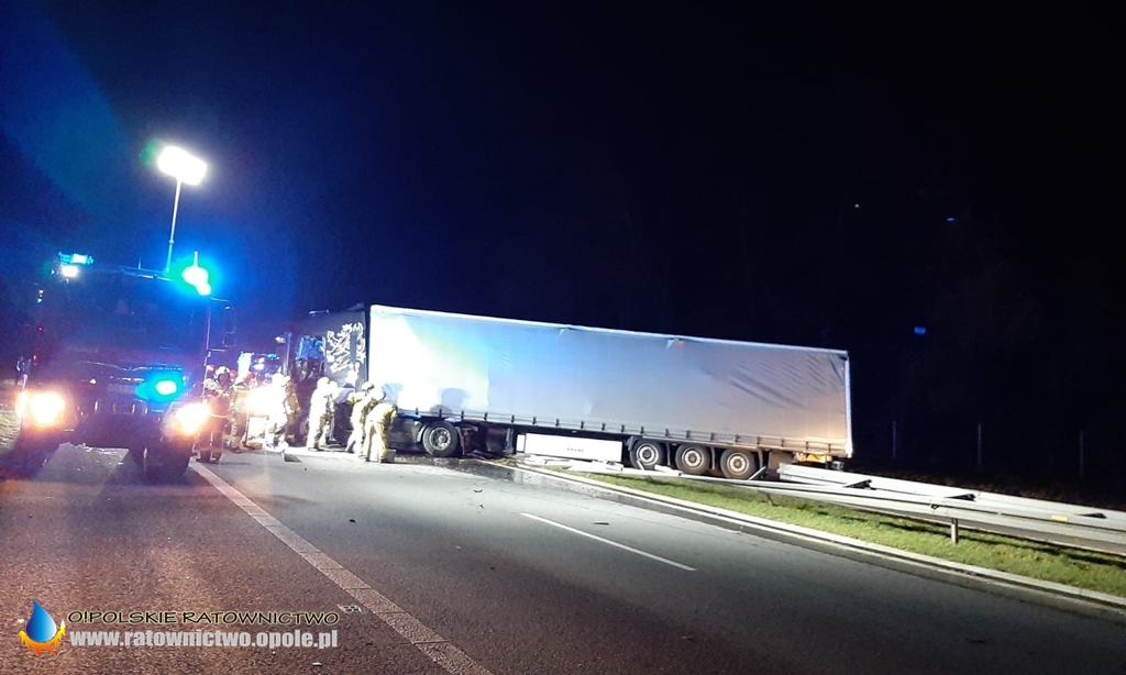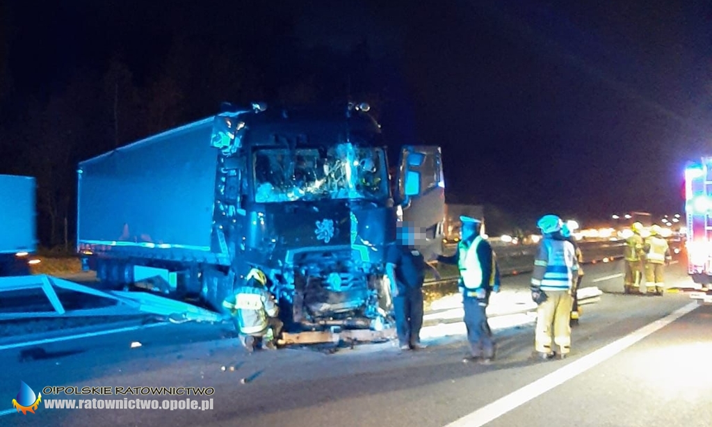 Na wysokości miejscowości Wysoka na nitce w kierunku Katowic doszło do zderzenia dwóch samochodów ciężarowych. Jedna z ciężarówek po zderzeniu przebiła bariery. W pojeździe doszło do uszkodzenia zbiornika z paliwem, które wylewa się na drogę.