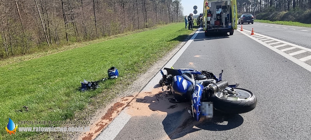 Ranny motocyklista został zabrany przez ZRM do szpitala.