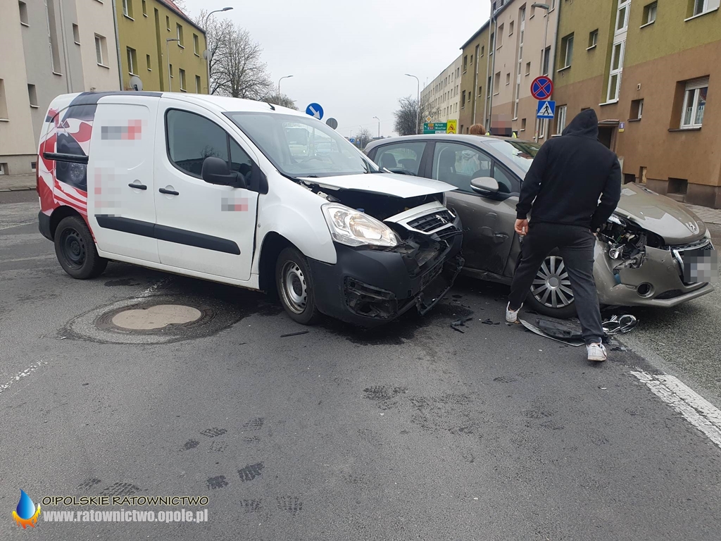 Ze wstępnych informacji wynika, że kierujący samochodem marki Peugeot Partner wymusił pierwszeństwo przejazdu i doprowadził do zderzenia z prawidłowo jadący Peugeotem.