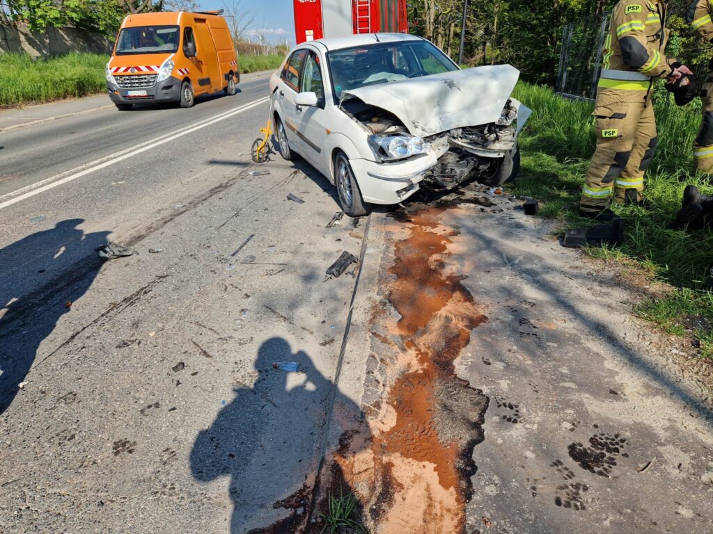 Na prostym odcinku drogi doszło do czołowego zderzenia Forda i Peugeota. W wyniku zdarzenia na szczęście nikt nie został poważnie ranny, jedna osoba została zabrana przez ZRM do szpitala na badania.