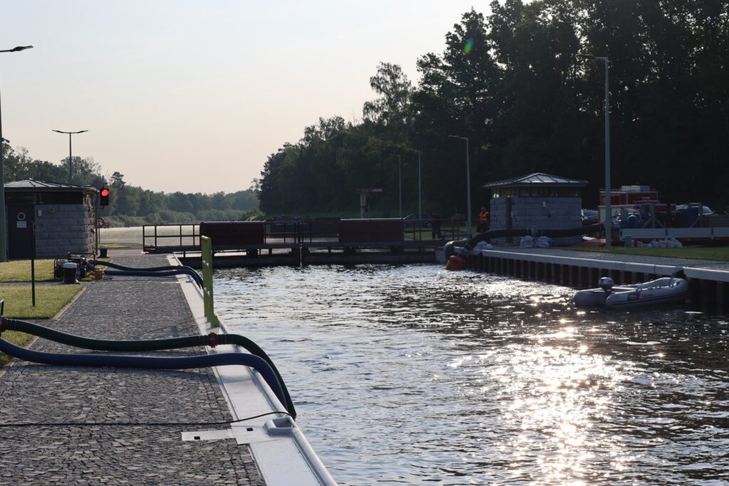 Dziś na Kanale Gliwickim (Śluza Sławięcice) prowadzone był działania zaradcze związane ze zwalczaniem złotej algi. Przetestowane w warunkach laboratoryjnych preparaty powstrzymujące rozwój glonów zostały użyte w Kanale Gliwickim.