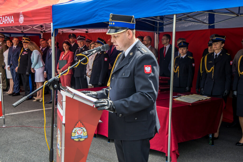 Zastępca Komendanta Głównego PSP nadbryg. Arkadiusz Przybyła podziękował za służbę i pracę wszystkim związanym z ochroną przeciwpożarową w regionie oraz pogratulował wszystkim awansowanym, odznaczonym i wyróżnionym.
