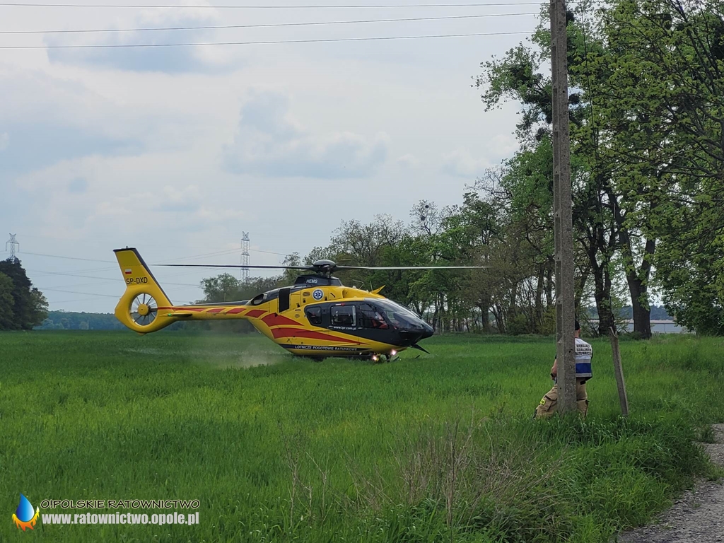 Do zdarzenia zadysponowano zastępy straży pożarnej z JRG 2 Opole, OSP Narok i OSP Żelazna oraz śmigłowiec Lotniczego Pogotowia Ratunkowego Ratownik 23 HEMS Opole i policję.