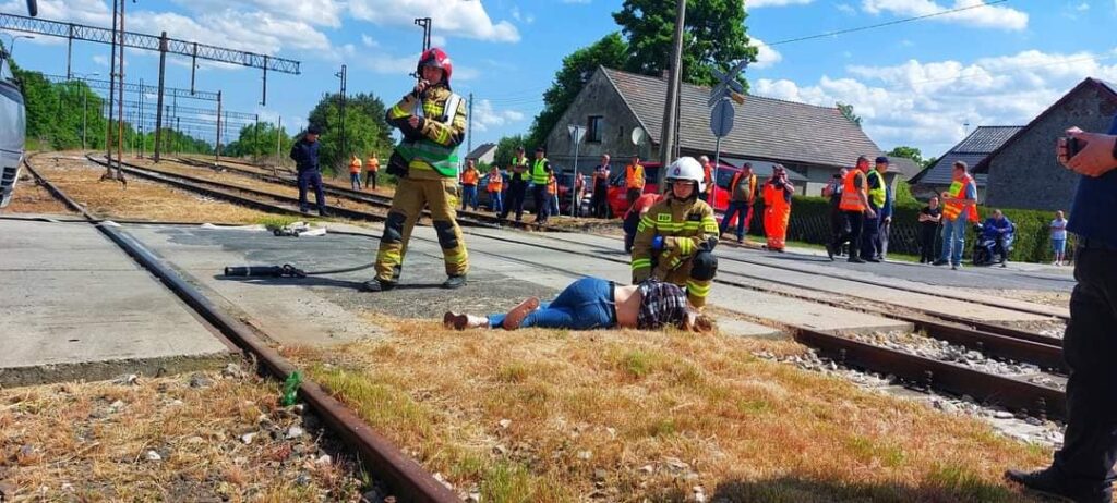Scenariusz zakładał, że na przejeździe kolejowym doszło do katastrofy. W zdarzeniu ucierpiało wiele osób, którym należało jak najszybciej pomóc. Zainscenizowano katastrofę o charakterze masowym. Na niestrzeżonym przejeździe kolejowym, pociąg osobowy uderzył w autobus szkolny. Po zderzeniu pojazdów, pociąg częściowo wykoleił się, tamując całkowicie ruch. Patrol Policji prosi o dodatkowe wsparcie oraz powiadomienie pogotowia ratunkowego, jak i straży pożarnej. Wiele osób zostało rannych. Do akcji ruszyły służby ratownicze – Policja, Państwowa Straż Pożarna, zespoły ratownictwa medycznego. Wsparcia udzielali funkcjonariusze Straży Ochrony Kolei oraz pracownicy PKP PLK i POLREGIO.