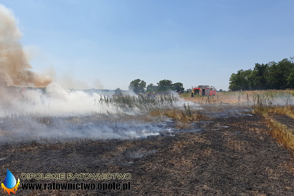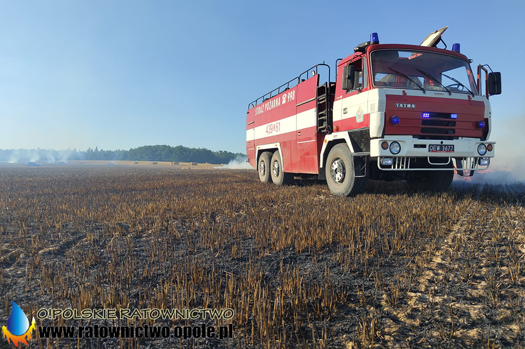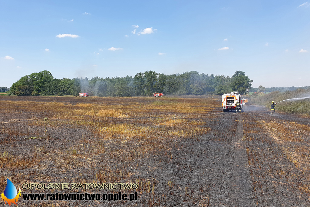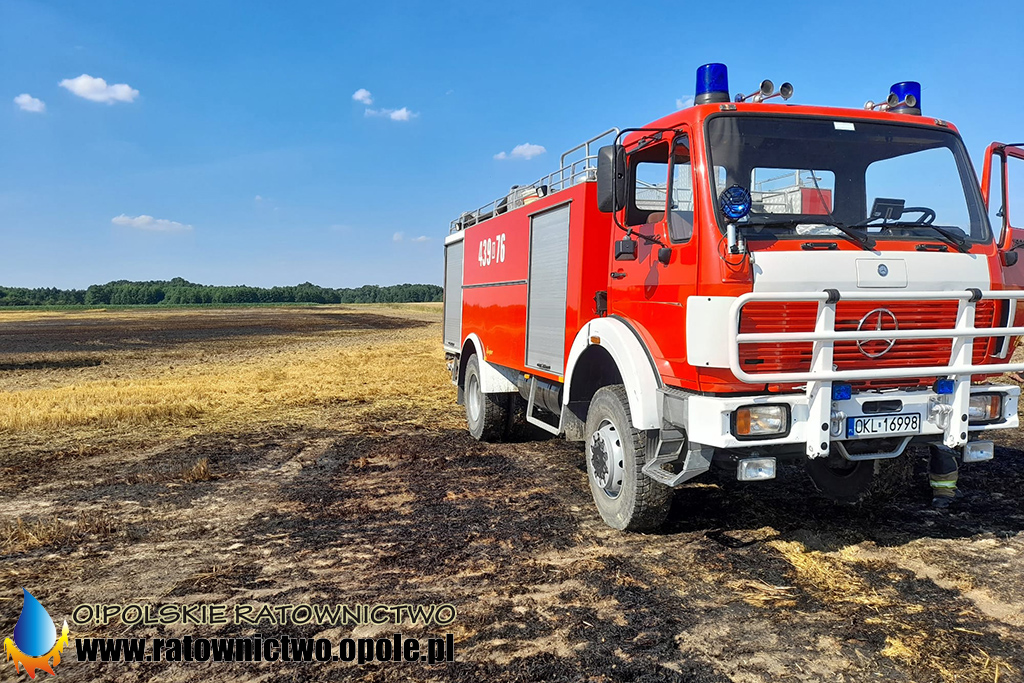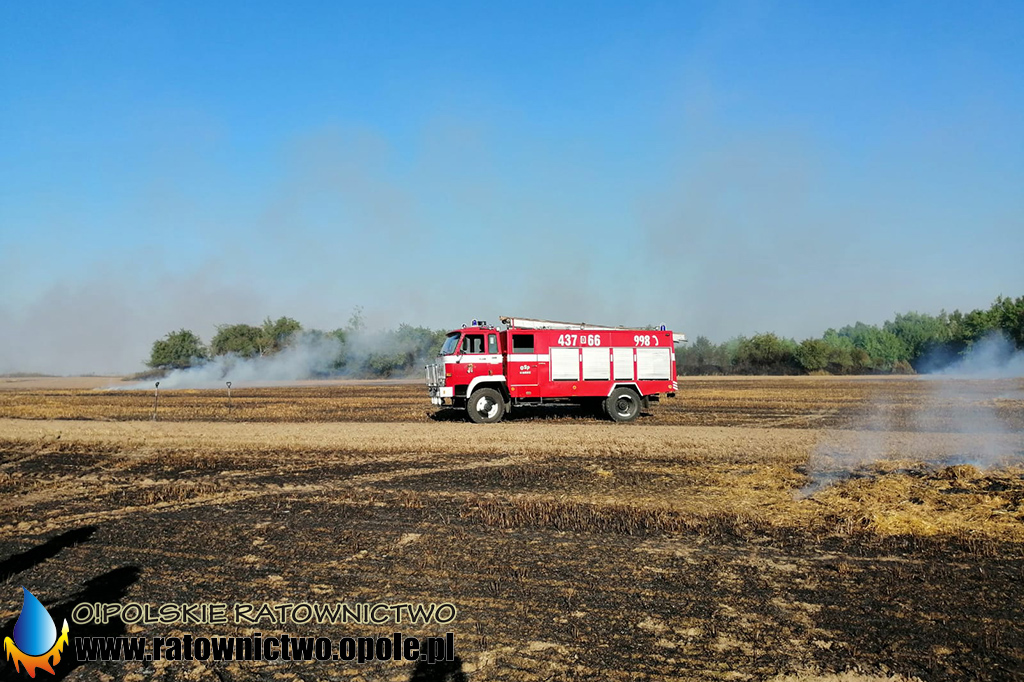 Strażacy dziewięć razy interweniowali przy pożarach rżyska, dziewięć razy przy pożarach zboża na pniu oraz trzykrotnie prowadzili działania związane z gaszeniem słomy po kombajnie.