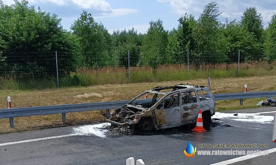 W niedzielę 23 lipca o godzinie 12:12 dyżurny Stanowiska Kierowania Komendanta Powiatowego Państwowej Straży Pożarnej w Strzelcach Opolskich otrzymał zgłoszenie o pożarze samochodu osobowego na zjeździe z autostrady A4 (węzeł autostradowy Strzelce Opolskie).