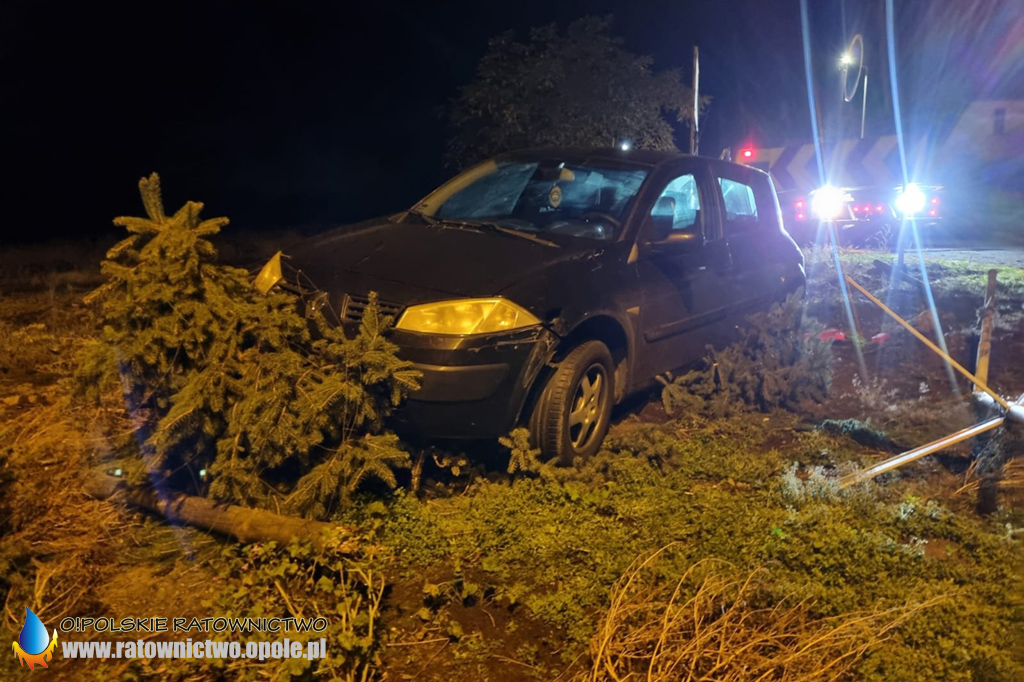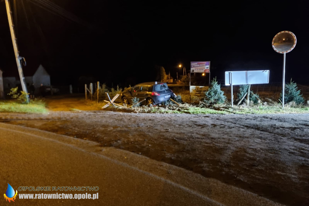 25-latek kierujący samochodem osobowym marki Renault stracił panowanie nad pojazdem i uderzył w ogrodzenie oraz znak.