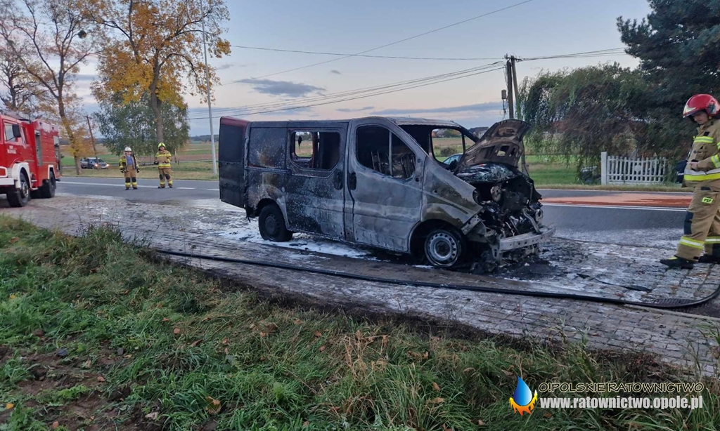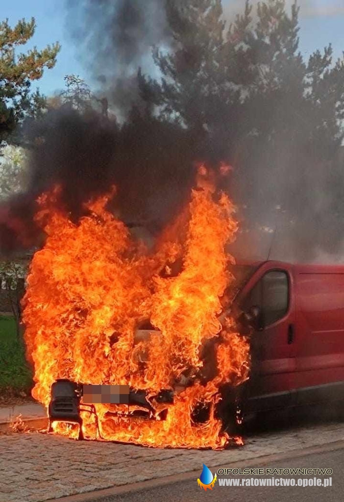 Po przybyciu strażaków na miejsce zastano w pełni rozwinięty pożar samochodu marki Opel Vivaro.