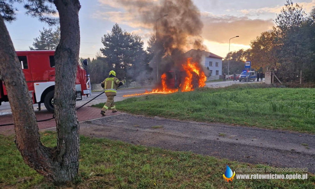 Kierujący nim mężczyzna w porę zjechał na przystanek i opuścił bezpieczenie pojazd.