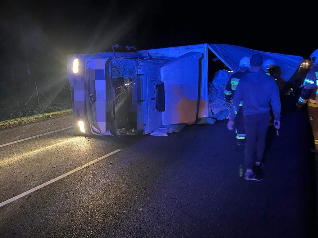 Po dojeździe na miejsce potwierdzono treść zgłoszenia. Ciągnik siodłowy wraz z naczepą wylądowały na boku, blokując oba pasy jezdni.