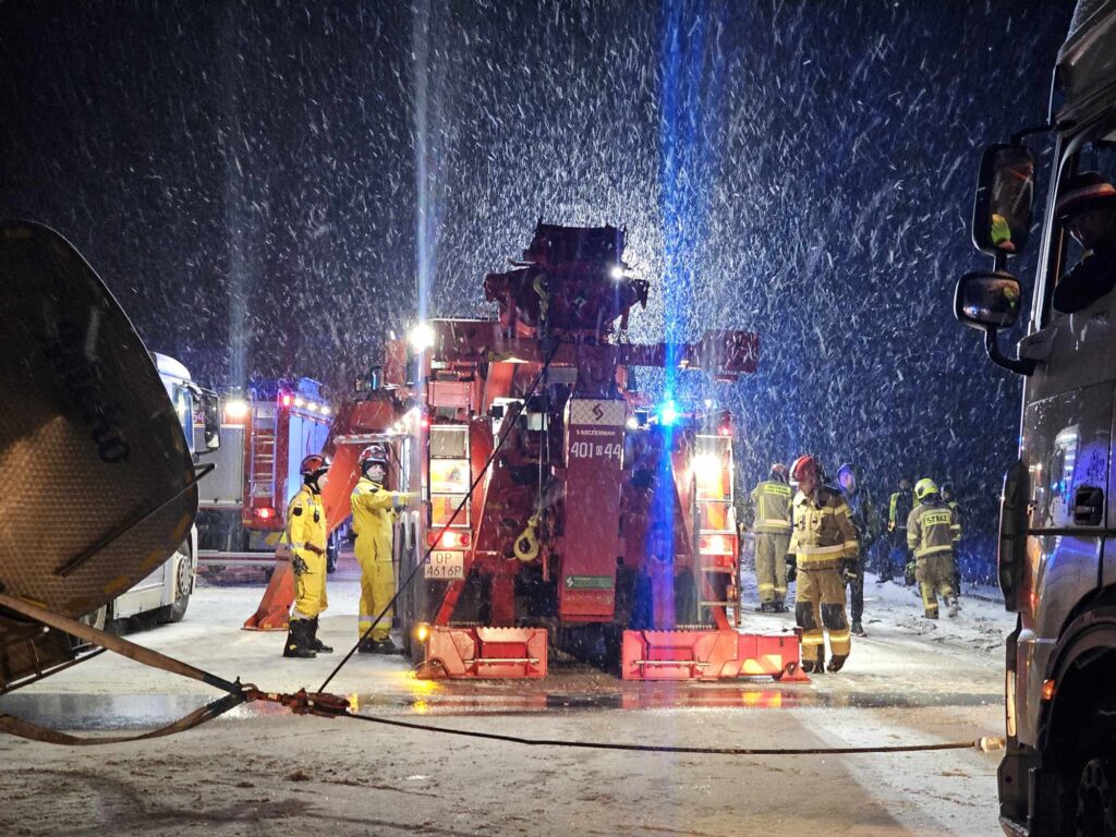 We wtorek 28 listopada o godzinie 17:25 do Stanowiska Kierowania Komendanta Powiatowego Państwowej Straży Pożarnej w Brzegu wpłynęła dyspozycja wyjazdu od Stanowiska Kierowania Opolskiego Komendanta Wojewódzkiego PSP dla Specjalistycznej Grupy Ratownictwa Technicznego do przewróconej ciężarówki przewożącej mleko, która blokowała przejazd. Do zdarzenia doszło na 180 kilometrze autostrady A4 w kierunku Katowic.